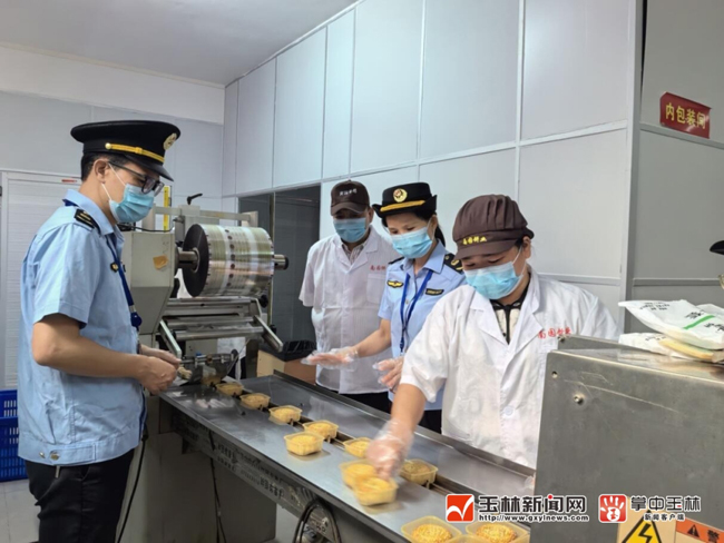 市场监管工作人员在监督企业的月饼生产流程。