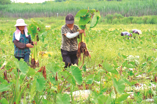 刘圩香芋喜获丰收,工人们正忙着采收。