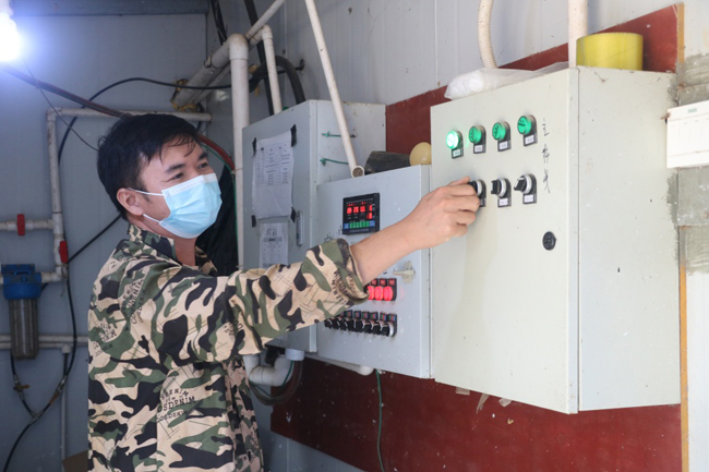 近日,天气炎热,但在邕宁区那楼镇那头村的邕宁区农利丰家禽饲养家庭农场的鸡舍里却是凉风习习,上万羽肉鸡正惬意地进食、踱步。原来,农场负责人杨宜觉一大早便通过自动温控系统将鸡舍内的温度和湿度调整到了最佳模式。“处在成长期的肉鸡抵抗力还不够强,过冷过热都容易让它们出现健康问题,体感温度23℃最适宜其成长。”杨宜觉说。