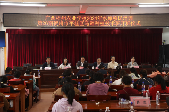 10月29日,贺州市平桂区第26期水库移民马蹄种植技术培训班由广西梧州农业学校成功举办。出席本期培训班开班仪式的领导有贺州市生态移民发展中心副主任、平桂区沙田镇党委书记、平桂区生态移民发展中心主任等。在开班仪式上,与会领导纷纷发言,强调了马蹄种植技术培训对于提高水库移民收入、推动乡村振兴的重要性。他们表示,此次培训班的举办,是平桂区推动现代农业高质量发展的又一重要举措,也是为当地农民提供技术支持和致富途径的有效途径。
