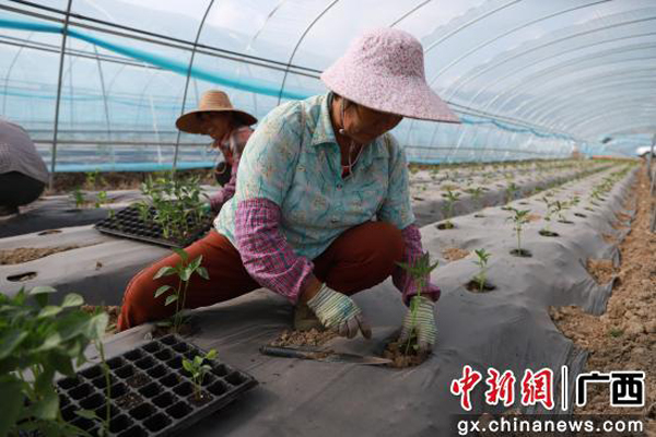 眼下,正是辣椒起苗移栽关键时节。连日来,广西贵港市港南区木格镇平悦村富硒辣椒基地里一片繁忙,村民们纷纷开展暖棚辣椒苗移栽以及栽后管护工作。