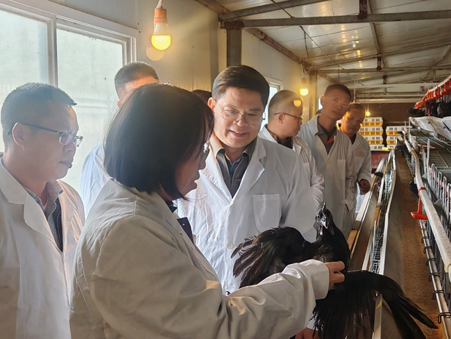 日前,广西畜禽品改站党组书记方家壮、广西农职大畜牧研究院家禽研究室主任孙俊丽及河池市农业农村局领导一行4人到东兰县指导乌鸡保种工作,对广西东兰乌鸡原种繁育场提出的种畜禽生产经营许可证申请进行现场核验。