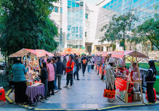 随后,歌舞快闪迎新年,全场合唱新春歌曲,一同唱响对新年的祝福。表演结束后,领导前往活动现场参观,感受绿色新春集市氛围。