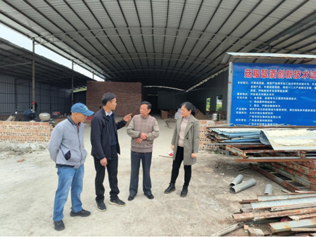 12月26日,玉林市科技特派员秦延春及其团队成员一行3人又深入广西河松生物科技有限公司兴业县北市镇北市村菇粮酿酒技术试验示范基地开展科技服务,为企业出谋划策、排忧解难。