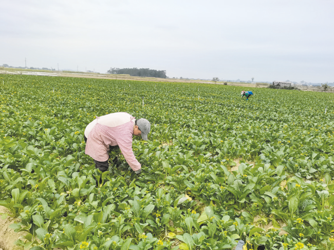 在那海村宏发蔬菜基地,工人忙着采摘菜心销往各地。
