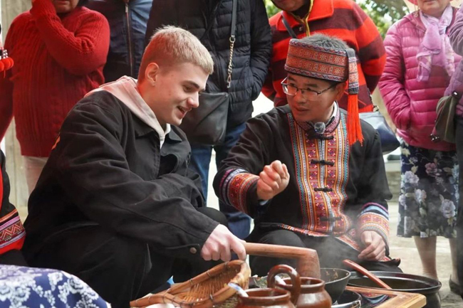 恭城油茶展位人头攒动,浓浓的恭城油茶香气弥漫在空气中,吸引了众多领导嘉宾和国内外游客驻足品尝。恭城油茶非遗代表性传承人现场展示传统技艺,木槌击打出的“千年传承”与翻腾的油茶交织出热气腾腾的“人间烟火”,并向游客们介绍恭城土特产和特色小吃等,在现场销售当地特色美食,推介民俗文化,让来自世界各地游客了解恭城,走进恭城。