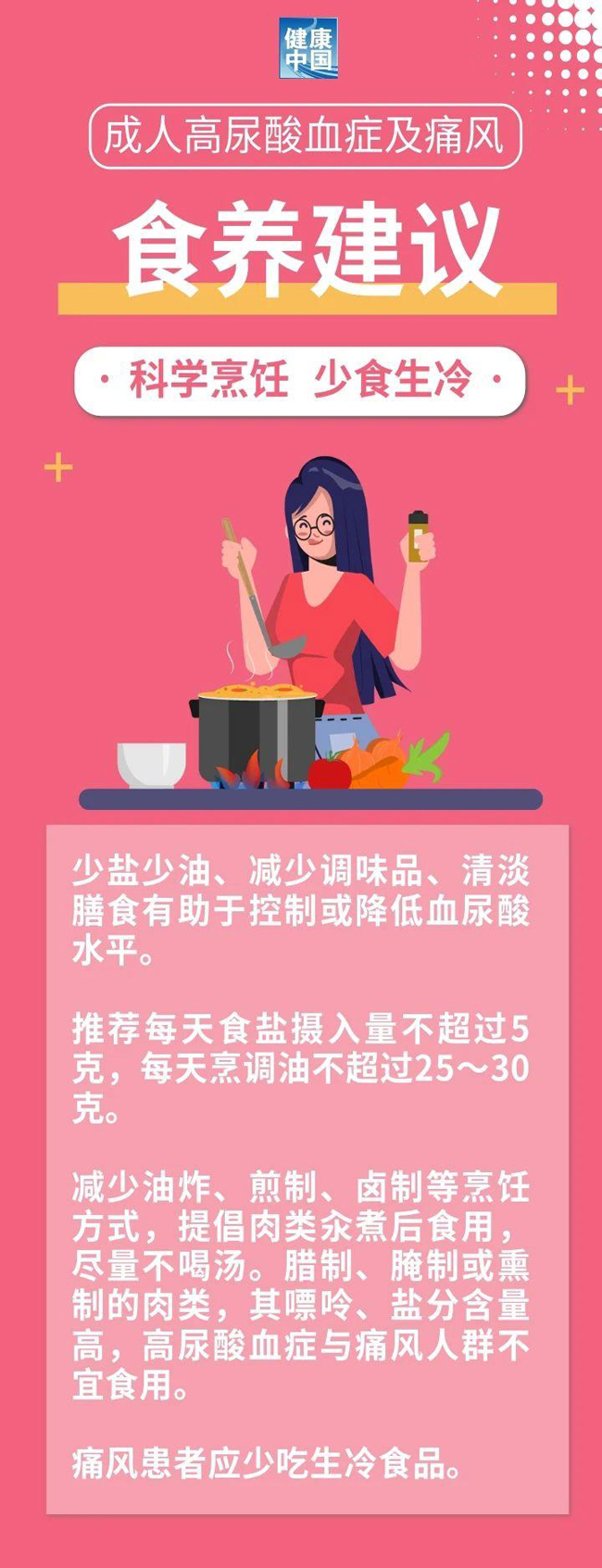 高尿酸血症与痛风的发生与膳食及生活方式密切相关,尤其是长期摄入高能量食品、大量酒精及高果糖的饮料。