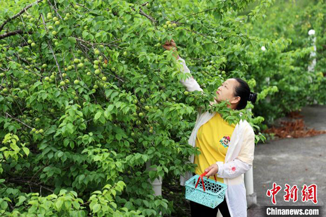 图为农户在采摘青梅。覃潇艺 摄