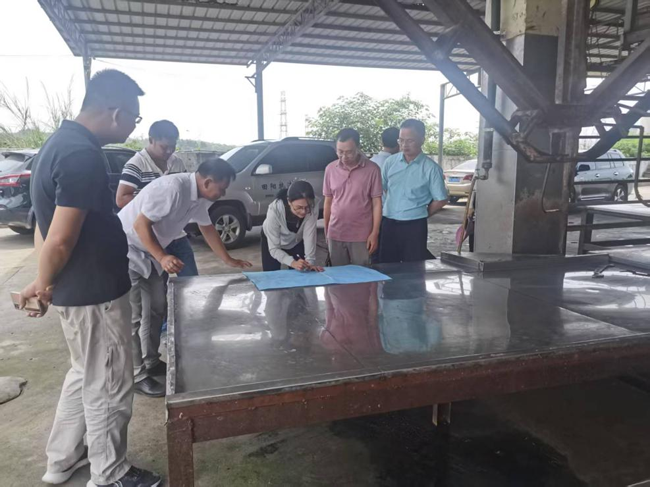 (图为:调研组指导我市生猪屠宰质量管理规范工作)