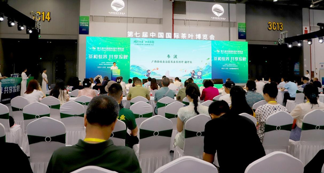 5月21日—25日,第七届中国国际茶叶博览会(简称茶博会)在杭州国际博览中心举行。广西作为本届博览会的主宾省,组团参加博览会系列活动。农业农村部部长韩俊到广西馆巡馆;自治区农业农村厅副厅长韦波在茶博会启动仪式、广西桂茶核心品牌推介会、广西六堡茶展示展销暨品牌推介会会上分别讲话。