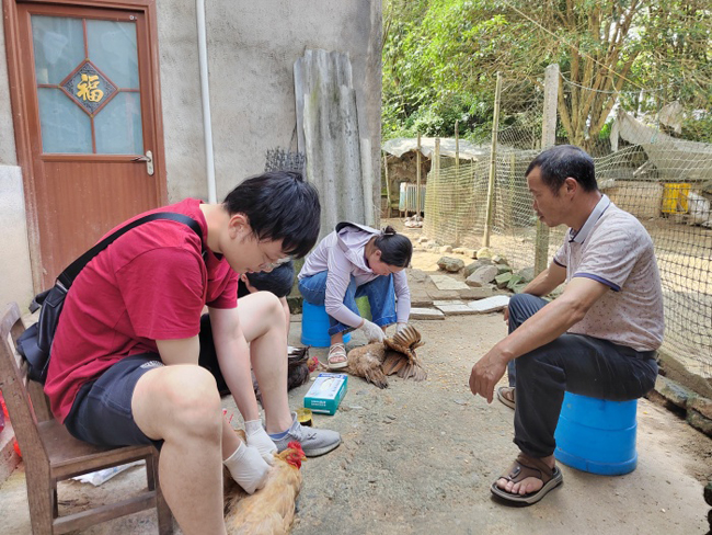 今年春天,防疫员邓雨尧又定期到了罗锦镇尚水村莫奶奶家中,给她自己家孵化的土鸡苗完成疫苗注射。莫奶奶常年在自己家养几十只土鸡,以前由于没有做好防疫,成活率不高,孵化的鸡苗有时能成活长大的甚至未过半,子女和孙子孙媳担心她受累,常常劝她不要再养。后来,接受科学的防疫服务后,土鸡苗成活率提高了三成。为此,莫奶奶感激之情溢于言表:“多亏了党培养的好技术员!让我养的土鸡活得好,给我的小孙孙回来有土鸡吃,还有土鸡蛋带回去城里。”