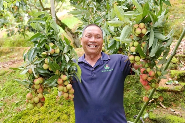 果农展示自己种的浦北妃子笑荔枝。毛丽婷摄