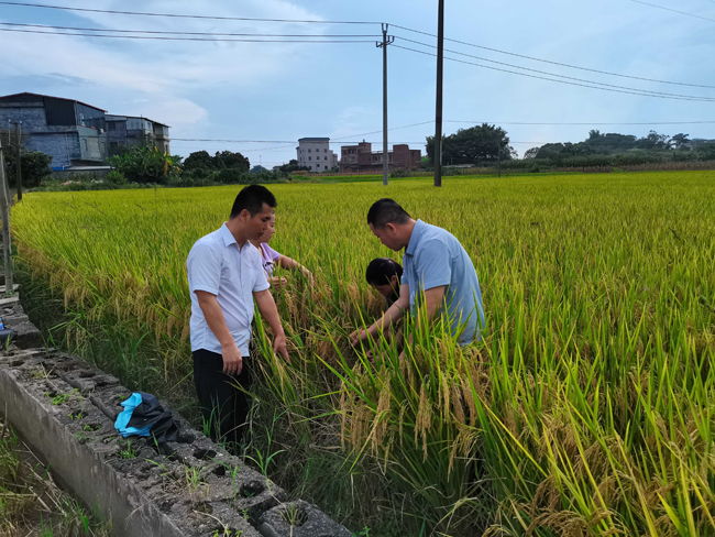 近日,贵港市农作物种子管理站组织专业技术人员到港南区湛江镇芦山村种子质量鉴定基地开展水稻田间种植纯度鉴定工作。