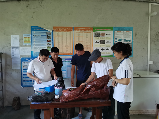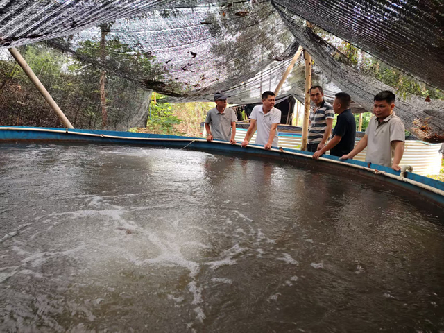 检查组对八步区信都镇大口黑鲈养殖场进行现场技术指导