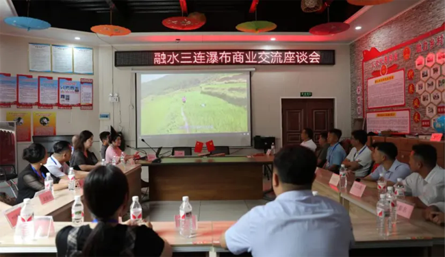 在拱洞乡政府及螺蛳养殖基地负责人的陪同下,广东佛山市一田鲜供应链有限公司考察团实地调研了三连瀑布景区生态旅游及螺蛳养殖产业。座谈会上,双方共同观看了三连瀑布生态养殖有限公司宣传片,并就合作前景展开交流。