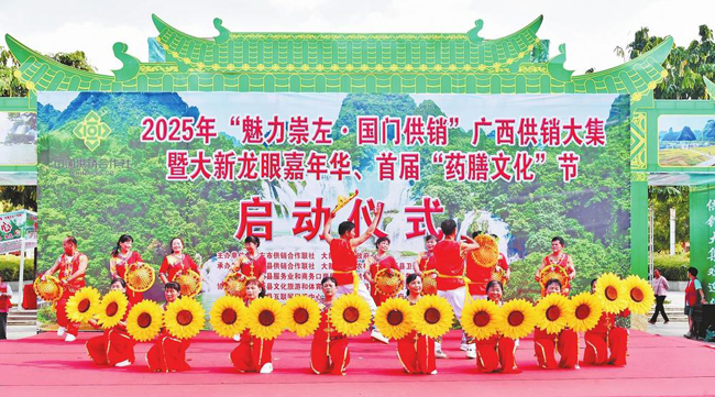 8月12日,2025年“魅力崇左·国门供销”广西供销大集暨大新龙眼嘉年华、首届“药膳文化”节活动在大新县德天广场启动。活动为期10天,以龙眼为媒,融合产品展销、文化体验、电商直播等多元形式,为当地特色产业发展搭建起综合协作平台。