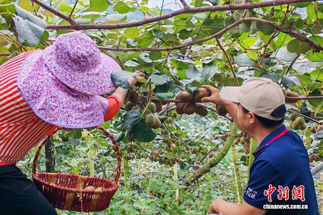 图为工人正在采摘猕猴桃。受访者供图
