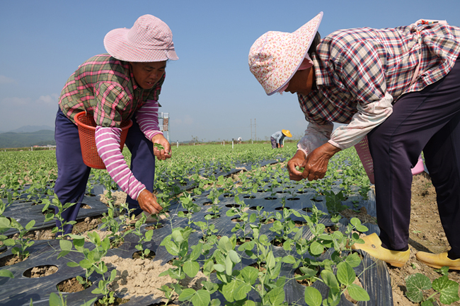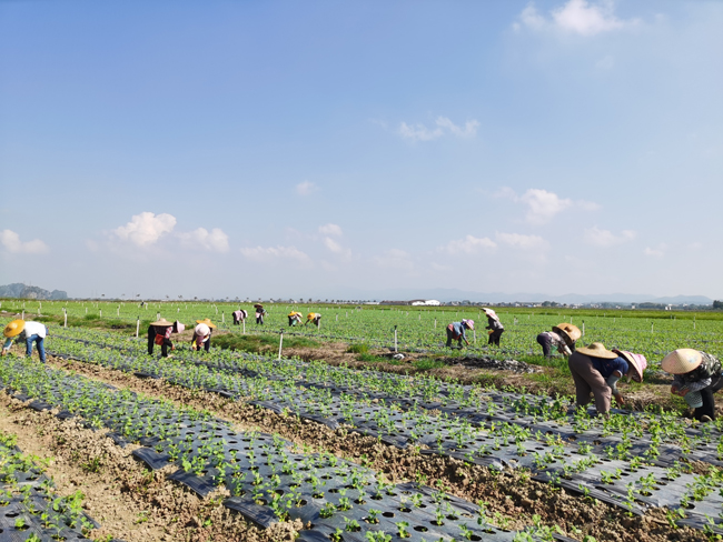 贺州市八步区东融(供港)蔬菜基地采用稻菜轮作模式,一年种植一到两季水稻,水稻收割后利用冬闲田发展蔬菜种植,既保证了土地的合理利用,又提高了农业生产的效益。同时,通过建立“公司+基地+合作社”的运营模式,推动产业集群发展。目前,该基地共培育发展农民专业合作社12家、家庭农场8家、种植大户190多户,有效辐射带动了周边1500多户农户种植供港蔬菜,让农户们切实受益,户均年收入超过15万元。