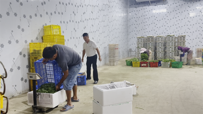 清晨的采收工作结束后,工人们迅速将打包好的豆杯装上冷链运输车。中午12点,冷链运输车准时从基地出发,经广贺高速,仅需4个小时就能直抵大湾区。据悉,贺州市在2023年底开通了供港澳蔬菜“直通直销”模式,这一创新模式成效显著,蔬菜运输时间压缩约40%,运输成本节省约30%,大大提高了蔬菜供应的效率和效益。