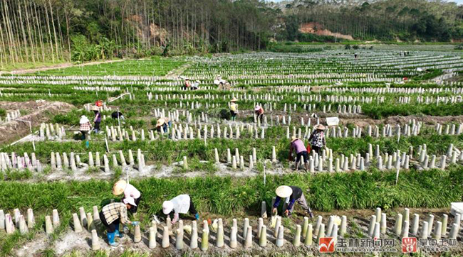 “这几天几乎每天都要投入20多个劳动力来收割韭黄,大概需要一个星期才能全部收割完。现在韭黄在市场上的批发价是每斤8块钱左右,行情非常不错!”据博白县新田镇亭子村韭黄种植基地管理员刘德宏介绍,韭黄一年可收割3次,能连续收割5年,正常情况下年均亩产可超2500公斤。韭黄收割下来后,经过清洗、整理、裁切后即可包装发货,目前,该基地的韭黄主要销往珠三角、长三角等发达地区。