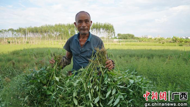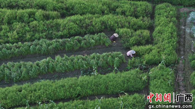 图为村民正在采收穿心莲。陆远培 摄