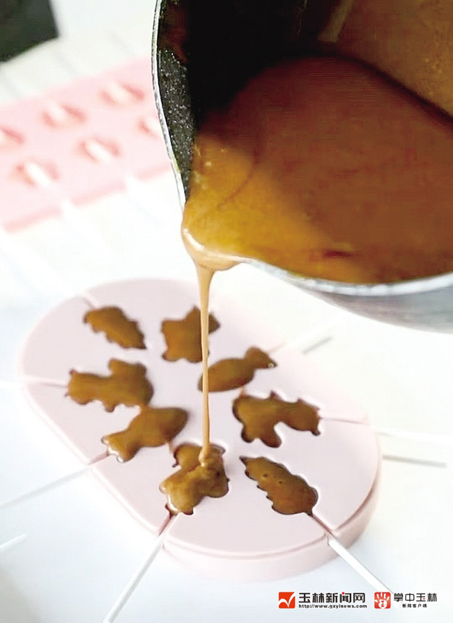用熬好的梨膏做成棒棒糖。