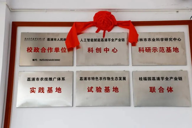 当天在茶城乡茶香社区揭牌成立的还有荔浦芋三产融合示范园,荔浦芋全产业链加工工程中心,广西农业职业技术大学、荔浦市人民政府校政合作单位,人工智能赋能荔浦芋全产业链科创中心,桂林市农业科学研究中心科研示范基地,荔浦市农技推广体系实践基地,荔浦市特色农作物生态发展试验基地以及桂福园荔浦芋全产业链联合体。