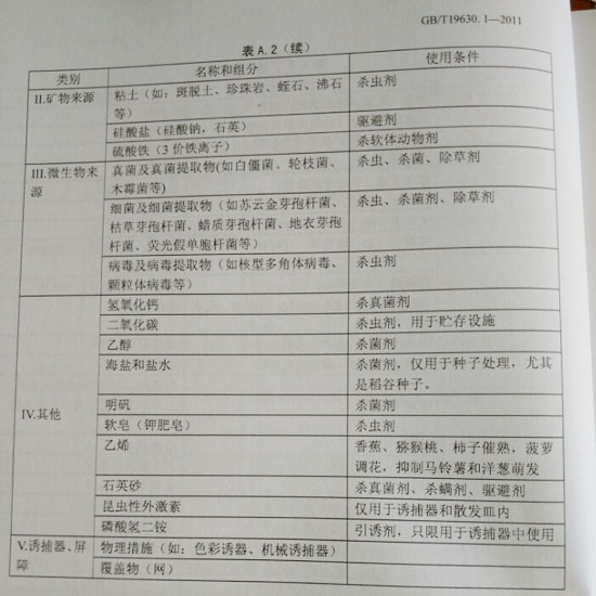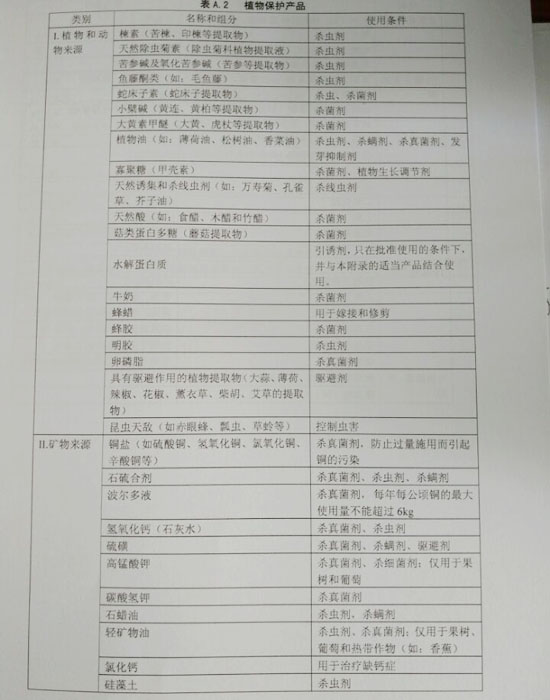 有机植物生产中允许使用的投入品