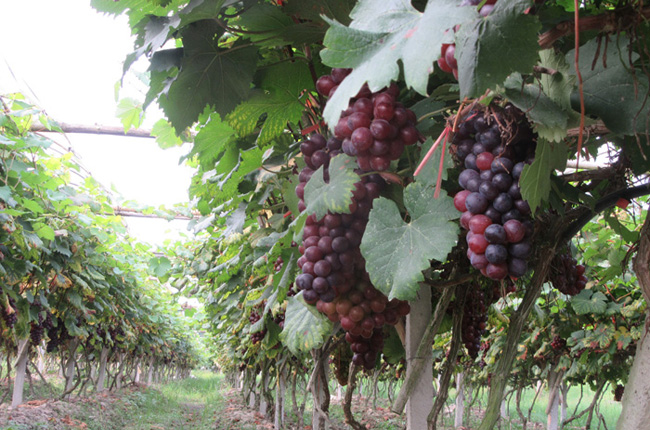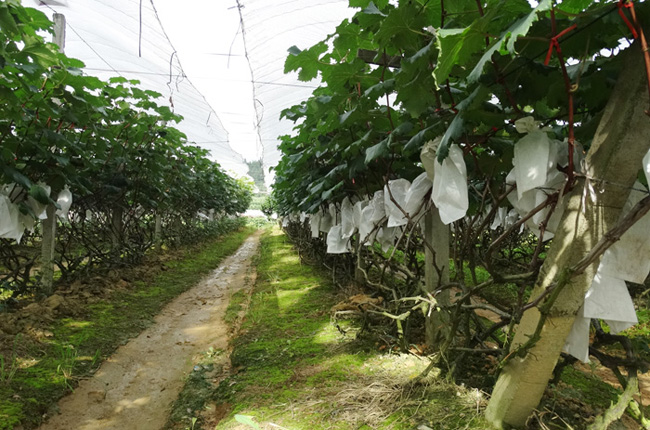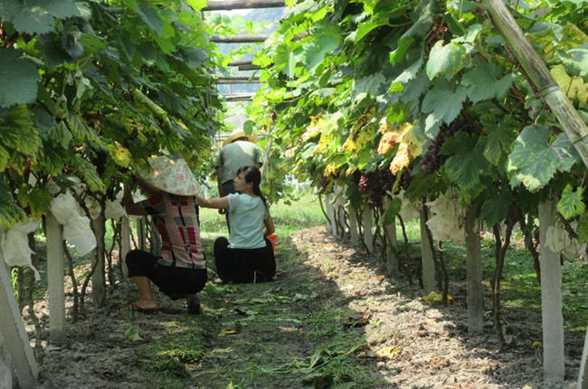 今年,融安县种植葡萄面积5300亩,总产量2850吨,主要有巨峰、夏黑、温克等品种,盛产乡镇有大良镇、沙子乡、泗顶镇和潭头乡。融安县把发展精准扶贫和乡村旅游相结合,通过有效引导,大力推广“扶贫产业+旅游采摘”模式。其中大良曹家葡萄生态采摘园作为全县的产业扶贫、助农增收葡萄生产示范基地,位于大良镇良北村,即209国道沿线的农业观光旅游带内,种植规模80多亩,拥有夏黑、温克、高麦、红吧丽、金手指、蓝黑宝等丰富的品种,采用设施避雨、果实套袋、水肥一体化及增施农家肥等实用技术进行栽培,是集采摘品尝、休闲观光、餐饮娱乐于一体的农业综合示范园,每年接待游客1万多人次,能给当地村民带来120多万元的经济收入。