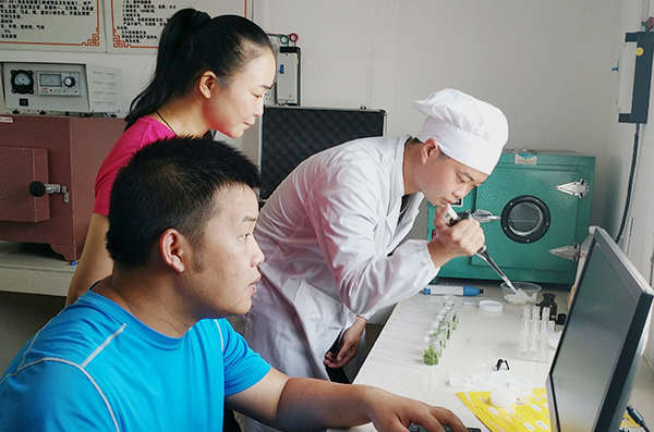 图为2017年8月2日,茶园企业领导到企业检测室督促检查检测情况