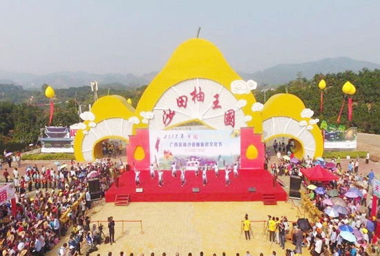柚果飘香,客商云集,10月26日---29日,2017广西容县沙田柚旅游文化节在该县自良镇沙田柚王国景区、容州古府广场、容县宽华物物园、容县民国小镇举行。沙田柚旅游文化节以“品天下珍果,游千姿容州”为主题,旨在充分发挥好“中国沙田柚之乡”和“广西特色旅游名县”的优势效应,加快实现地方优势产业的深度融合,加快容县创建“国家全域旅游示范区”的步伐,早日全面建成广西特色旅游名县、岭南区域健康养生中心、岭南区域商贸物流中心、岭南区域文化交流中心“一名县三中心”。