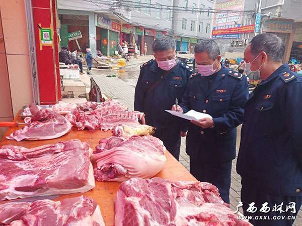 据悉,自2019年开展非洲猪瘟防控工作以来,西林县市场监督管理局严抓细管猪肉产品质量安全,强化工作措施,落实监管责任,打击采购、经营无合法来源、无“两证两章”(即:肉品品质检验合格证、动物检疫合格证,肉品品质检验合格验讫印章、动物产品检疫合格印章)的猪肉产品等违法行为。严查猪肉产品进货查验记录、索证索票等制度落实情况,要求购销的肉符合食品安全标准和国家动物检验检疫相关规定,严禁采购和销售无合法来源、未经检验检疫或检验检疫不合格的肉及肉制品,严禁不合格猪肉进入市场。