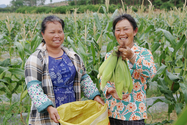 5月15日,在象州县马坪镇丰收村的丰收水库的玉米基地里,几位村民正忙着收割甜玉米,到处洋溢着丰收的喜悦。据了解,象州县马坪镇、石龙镇、运江镇一带都是盛产甜玉米的乡镇,从5月中旬开始,各地玉米陆续摘收,今年由于天气状况良好,甜玉米不仅质优价美,亩产量也比往年有所提高,平均亩产2000斤左右。象州县甜玉米以外型个大饱满、味道清香脆甜的优姿态远销柳州、南宁等地,市场供不应求,村民们喜笑颜开。