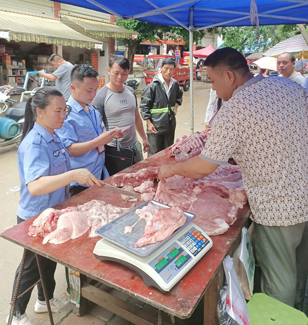 为进一步加强农贸市场食品安全管理,规范食品经营行为,确保人民群众在农贸市场上购买到放心、安全的食品,切实做好我县肉品质量安全监管及非洲猪瘟防控工作。近日,西平市场监督所联合畜牧站工作人员开展猪肉检查。