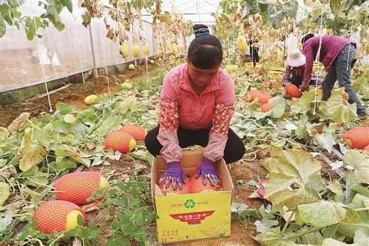府城镇永共村村民在采摘哈密瓜。黄子晏/摄