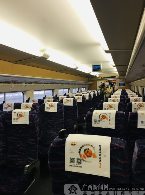 “与你相遇 一起同柑”登上动车。广西新闻网记者 覃雄 摄