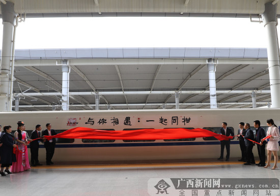 相关领导为“与你相遇 一起同柑”动车组冠名列车揭幕。许鸿静 摄