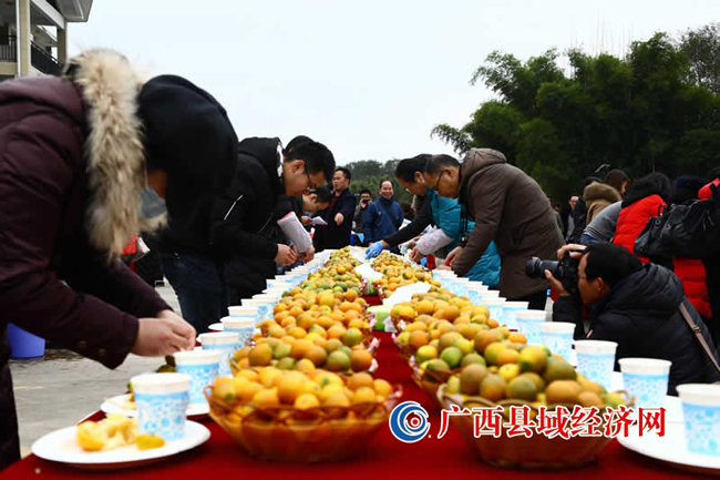 12月8日,在融安县大将镇三马屯拍摄的“我是融安金桔王”擂台赛初赛现场。(韦胜耀 摄)
